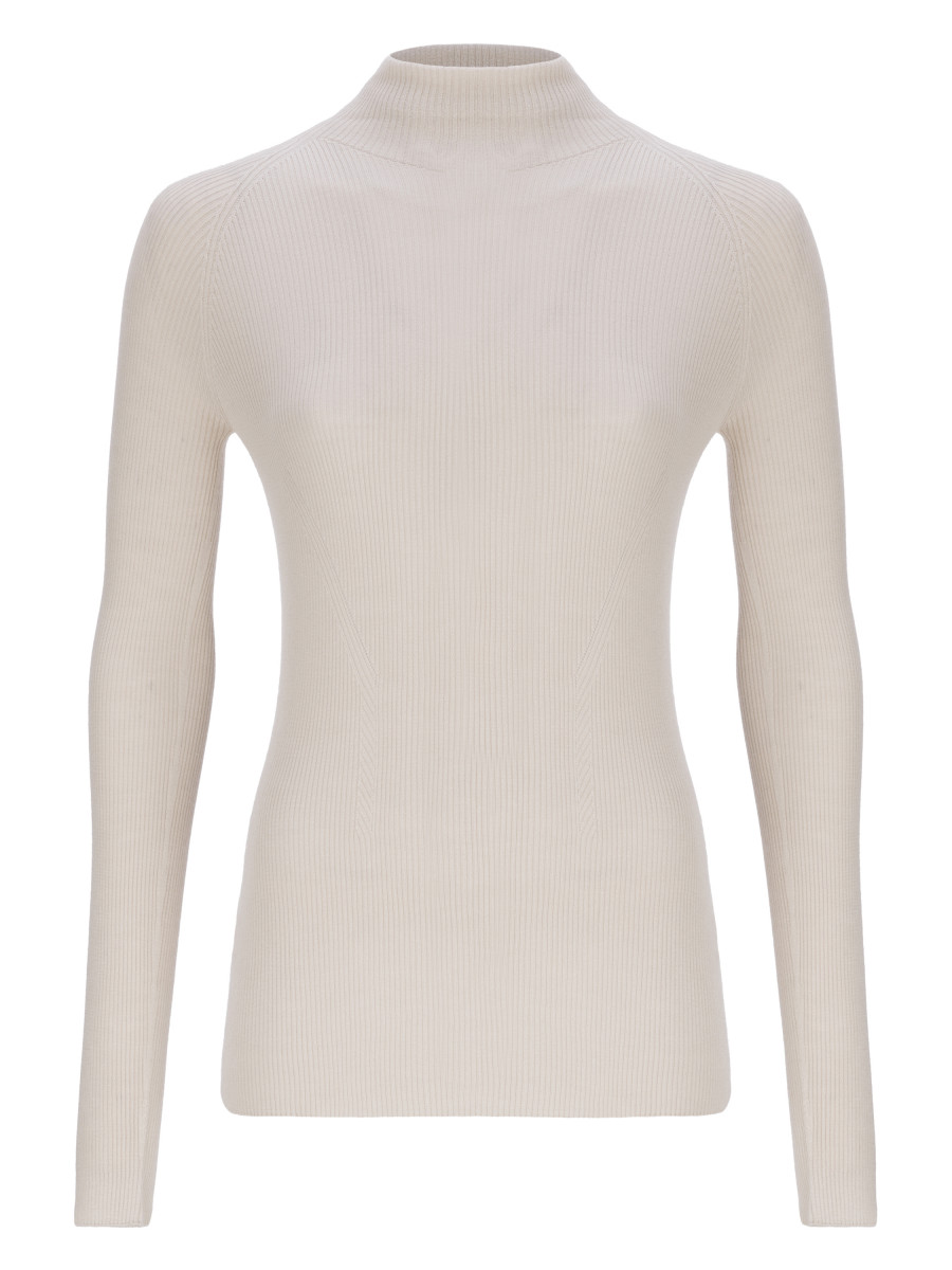 Водолазка в мелкий рубчик из смеси шерсти с шёлком. Премиальный состав обеспечивает не только легкость, но и превосходные тактильные характеристики. Натуральные ткани способны долго сохранять тепло и обладают высоким уровнем гигроскопичности, что позволяет свободно использовать изделие в качестве базового слоя в многосоставных осенне-зимних образах. Способ вязки – английская резинка предотвращает излишнее растягивание в процессе эксплуатации. Эластичный материал приятно облегает тело, выгодно подчеркивая достоинства фигуры.