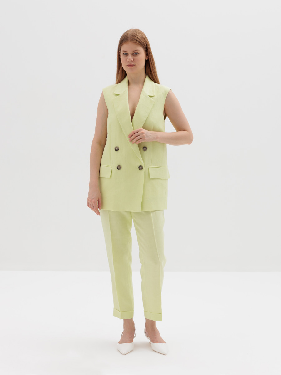 Однобортный жакет на пуговице с карманами-клапанами. Модель выполнена из смеси полиэстера с мохером, дополненной небольшим процентом шерсти, полиамида и хлопка. Смесовый состав с присутствием натуральных волокон обеспечивает высокий уровень терморегуляции и износоустойчивости. Присутствие в составе мохера создает слегка ворсистую фактуру и придает изделию мягкость и легкость, а комбинация синтетических материалов предотвращает некоторые механические деформации – жакет устойчив к пиллингованию и практически не мнется. Тонкий подклад выполнен из 100% вискозы. Гладкая вискоза предотвращает накопление статического электричества, что обеспечивает более комфортное соприкосновение с телом и другими материалами в образе. По бокам расположены удобные карманы-клапаны.