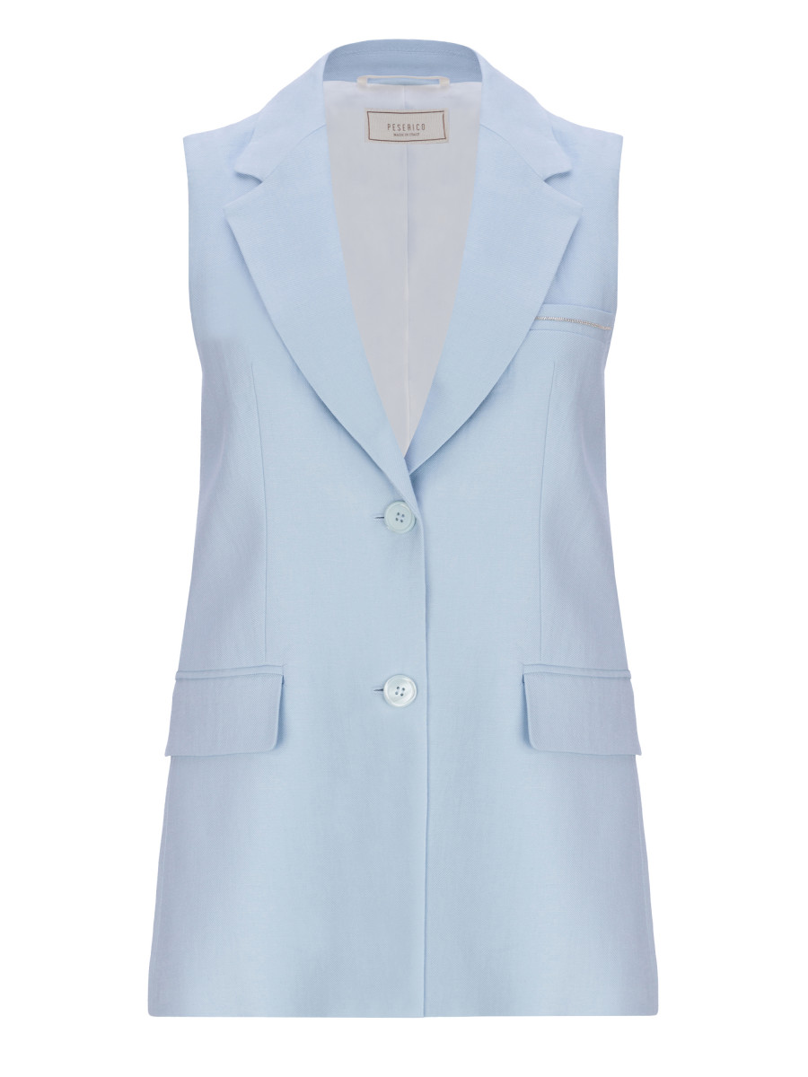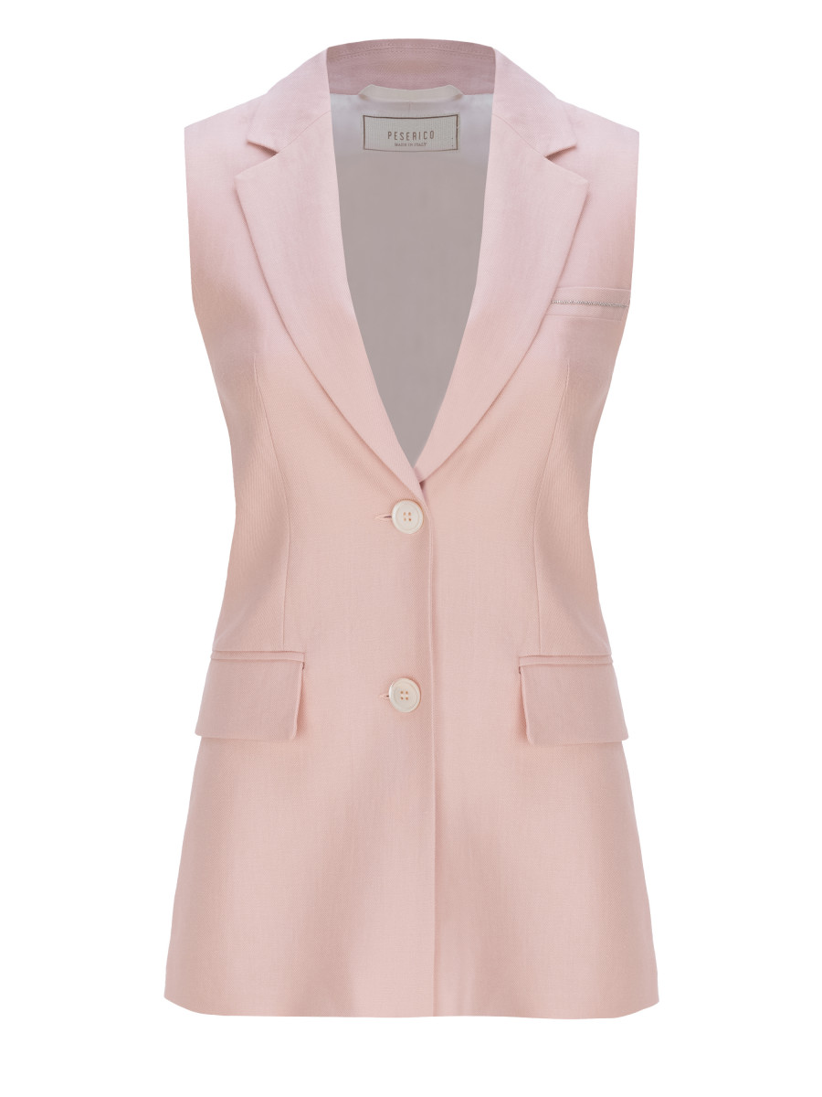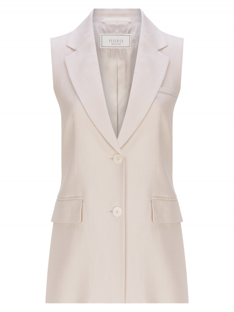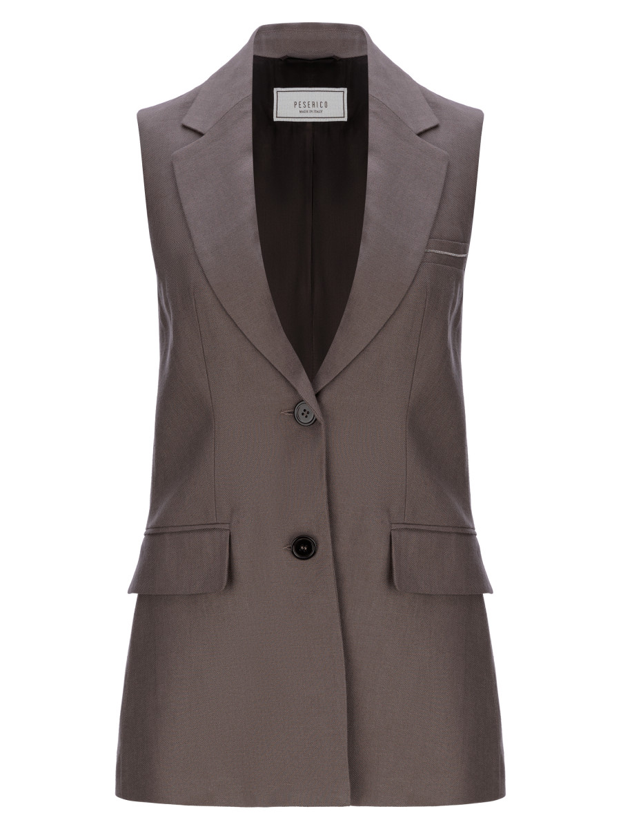 Однобортный жилет в крупную клетку. Модель выполнена из 100% льна. Данный материал обеспечивает высокий уровень воздухопроницаемости и поддержание комфортной температуры тела в жаркий летний период. Также, натуральный лён не вызывает аллергии, поэтому жилет подойдет для самой деликатной и чувствительной кожи. Лаконичная модель в нейтральном коричневом оттенке гармонично дополнит как стильные городские аутфиты, так и офисную базу. Гладкий подклад состоит из 100% вискозы, что обеспечивает легкий охлаждающий эффект при соприкосновении с телом. По бокам изделия расположены карманы-клапаны. Сочетайте жилет с брюками в том же оттенке из коллекции Peserico (артикул A04335).